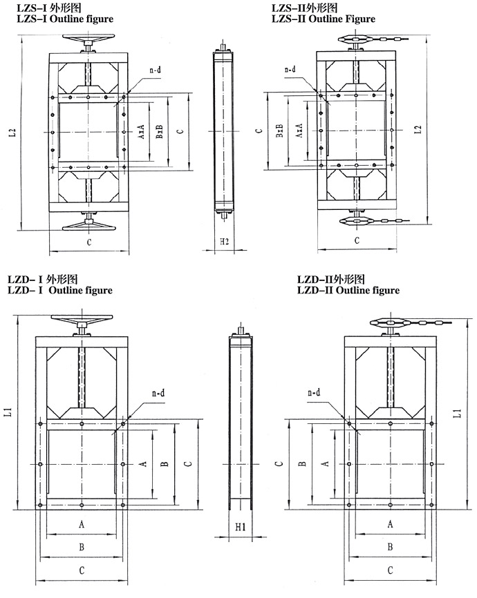結(jié)構(gòu)簡單、操作靈活、重量輕、無卡阻、切斷快,特別適用于各類無粘度的固體、粉料及小于 主要原理 主要由框架、閘板、絲桿、螺母等零件構(gòu)成,用手轉(zhuǎn)動手輪使絲桿帶著絲桿螺母和閘板沿水平方向往復(fù)運動,達(dá)到閘門的啟閉目的。 LZ 系列外形尺寸連接尺寸 使用說明 ·本閥可水平安裝或垂直安裝,安裝時兩法蘭連接中間必須加密封墊片,然后鎖緊螺栓。 ·操作時手輪順時針旋轉(zhuǎn)為閥關(guān),反之為開,不得在手輪上再增加輔助杠桿。 ·若長期存放應(yīng)使設(shè)備處于關(guān)閉狀態(tài),各傳動部位應(yīng)加潤滑油,不允許露天存放或堆置。
